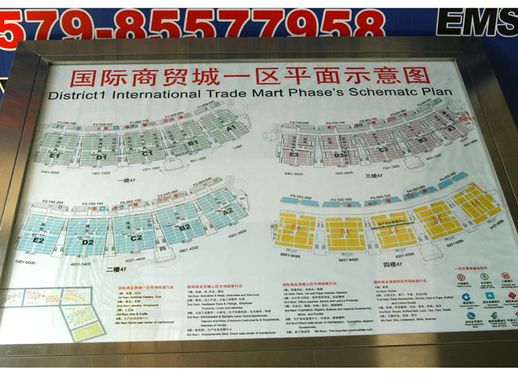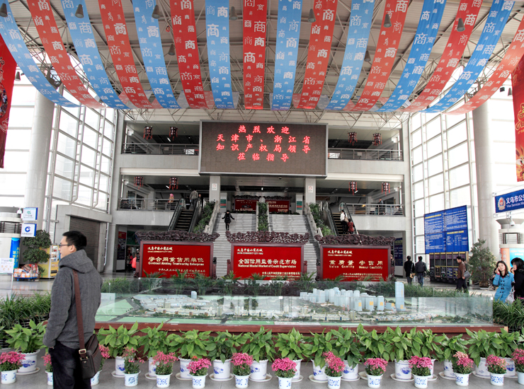 中國義烏國際商貿(mào)城一區(qū)市場于2001年10月奠基,2002年10月22日正式投入營運,市場占地420畝,建筑面積34萬平方米,總投資7億元,分為主體市場、生產(chǎn)企業(yè)直銷中心、商品采購中心、倉儲中心、餐飲中心五大經(jīng)營區(qū),共有商位10000余個,經(jīng)營戶10500余戶。一樓經(jīng)營花類、玩具;二樓經(jīng)營飾品;三樓經(jīng)營工藝禮品;四樓開辦了中小生產(chǎn)企業(yè)直銷中心、臺商館,東輔房為外貿(mào)企業(yè)采購服務(wù)中心。 國際商貿(mào)城是一個集現(xiàn)代化、國際化、信息化于一體的商品交易市場。自開業(yè)以來,一是實現(xiàn)了由傳統(tǒng)貿(mào)易向以商品展示、洽談、接單和電子商務(wù)為主的現(xiàn)代化經(jīng)營方式的轉(zhuǎn)變,被國內(nèi)外客商譽為“永不落幕的博覽會“;二是實現(xiàn)了國際貿(mào)易超過國內(nèi)貿(mào)易的轉(zhuǎn)變,每天客商達4萬人次,外商達5000人次,商品外貿(mào)出口率達60%以上,90%以上商位承接外貿(mào)業(yè)務(wù),商品銷往140多個國家和地區(qū);三是實現(xiàn)了市場硬件的智能化,整個市場人流、物流、信息流暢通,場內(nèi)安裝電梯、自動扶梯37座,汽車可直上二、三、四層,整個市場安裝了13000多個寬帶網(wǎng)絡(luò)接口,每個商位都可上網(wǎng)交易和查閱信息。
